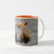 Deux renards adorables de bébé partageant un baiser doux. Coloration orange douce sur un arrière - plan noir et blanc.