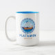 Platamon, tasse à café à deux tons en Grèce avec un design d'un navire grec ancien et des lettres de style grec. Ce modèle de navire de la Grèce antique a la clé grecque dans un design circulaire avec la mer et le ciel. Ce design de style grec fait de cette tasse un cadeau ou un souvenir idéal ou pour boire un café pendant vos vacances à Platamon.
