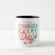 Ce design de t-shirt présente le texte "Plus fort chaque jour" dans une police minimaliste et géométrique avec des tons contrastés de la même couleur. La conception véhicule un sentiment de force et de détermination.
