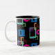 Reminiscent of Mid Century Modern designs from the 1950's and 1960's, this lively retro geometric pattern feestteal, orange, green and pink abstract shapes along with purple starbursts and red linear element. The background color may be easily customized.
