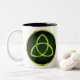 Un triquetra or sur un arrière - plan vert contre un arrière - plan noir (dans plusieurs produits). Le triquetra est un symbole ancien datant de l'époque païenne et symbolise une trinité, bien que la trinité soit une question de débat : Père, Fils, et Saint-Esprit ; les trois étapes d'une femme (jeune fille, femme et crone) ; les lunes cireuses, pleines et en déclin ; les pauvres, la classe moyenne et riche ; et beaucoup d'autres.