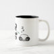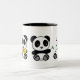 Trois adorables petits pandas assis les uns à côté des autres. Un heureux panda porte un tee - shirt avec "I heart panda" écrit dessus. Un autre propose un bâton de bambou vert à un troisième panda qui s'est endormi.