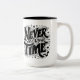 Une Mug de café motivante avec une typographie audacieuse avec l'expression inspirante "NE JAMAIS PERDRE LE TEMPS" encourageant la détermination et l'ambition.