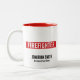 Celebrate the bravery of a firefighter with this "Unique Firefighter in Thin Red Line" custom two-tone coffee mug featuring a white text in red rentangular box somewhat like thin red line a simple "FIREFIGHTER" text. Add a personalized name and station/badge number to make it truly unique.