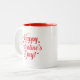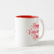 This ceramic coffee mug is shown with a Valentine greeting hearts print.