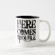Voici venir le problème : : Magnifiques, amusement et notre sale vient ici les caractéristiques de problème une typographie de roche affligée par cru et une petite émoticône sauvage au centre. Notre vient ici la conception de problème est pleine de la mauvaise attitude de fille et du fun.com