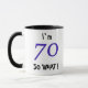 70th Birthday Funny Gift 70 Alors quelle Citation Mug. Une excellente idée cadeau pour quelqu'un célébrant le 70e anniversaire. Il vient avec une citation drôle I`m 70 alors quoi et est parfait pour une personne avec un sens de l'humour.