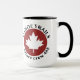 Cette tasse à café bicolore de 15 oz présente le logo Maple Leaf de Canoe Trails.