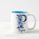Une tasse à café personnalisée dans des nuances de bleu avec un papillon coordonné, présentant le monogramme de la lettre "P". Personnalisez-la facilement avec votre nom ou créez un cadeau unique pour vos proches. Suffisamment d'espace pour ajouter une citation ou un message supplémentaire ou même un arrière-plan. Cette tasse est également disponible dans différents styles et combinaisons de couleurs. Parcourez la collection pour voir des exemples de ce type de police sur les différents styles et tailles de tasses.
