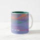 Cuisine abstraite lavande moderne minimaliste motif tasse à café. Tasse à café personnalisée. Ajoutez un éclat de couleur à votre journée avec cette tasse de café personnalisée portant votre nom en bandes psychédéliques bleues vert. Le design minimaliste et géométrique de la lettre en fait un cadeau unique et réfléchi pour les amis et la famille.