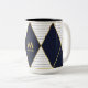 Tasse à deux tons de bleu marine d'or de monogramme de luxe de rayure.