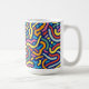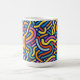 Un design de tasse audacieux et énergique rempli de courbes abstraites vibrantes et de lignes fluides ludiques. Le mélange riche de couleurs vives sur un fond profond crée un rythme joyeux, parfait pour les esprits créatifs et les amateurs de vaisselle inspirée de l'art moderne.
