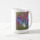 une tasse de café avec une peinture contemporaine des "oiseaux à l'aube"