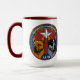 Cette tasse a été conçue par des artistes Ann LePere et Susan Phillips de la Caroline du Nord. Elle a été inspirée par le Néerlandais de Pennsylvanie que le sortilège signe et capture les chiens rouges et bleus de bétail, avec le texte supplémentaire : Vitesse, agilité, détermination, intelligence.
