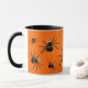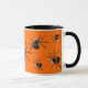 Utilisez cette mug d'araignée aux yeux de bogue ridicule lorsque vous faites un tour ou traitez sur Halloween ou à n'importe quel moment de l'année. Ils n'effraieront personne mais vous êtes sûr de recevoir beaucoup de rires et de bonbons. Les araignées noires aux yeux blancs qui s'arrachent de la tête sont éparpillées sur un arrière - plan orange.