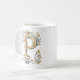 Cette tasse à café présente une lettre initiale 'P' ornée dans le style baroque et convient à une princesse. Ce serait un beau cadeau de demoiselle d'honneur, ou un cadeau pour la fête des mères ou un anniversaire.