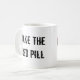 Tasse blanche de base avec le logo d'Umit et l'énonciation : Prenez la pilule rouge.