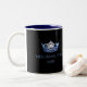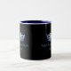 Une copie bleue brillante de couronne a porté l'avant et le centre en équilibre de chaque côté de cette tasse de café/cacao. Montré sur une tasse noire et blanche avec un texte bleu intérieur et coordonné de marine. Customisez votre intérieur et personnalisez le texte témoin à vos propres. Montré comme Mlle Hamilton 2018.