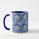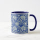 Cette tasse en céramique comporte une masse des oeillets ivoire-colorés et autres des fleurs de cottage de terrain communal répandus environ, toboggan, sur un fond bleu de marin moyen, un motif inspiré par une conception préférée de papier peint de Victorien-ère.