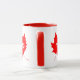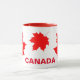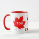 Trois feuilles d'érable rouge volent au vent d'automne. Numéro 150 dans les feuilles gauche et droite. Parole rouge Canada sous la feuille médiane. Élégante tasse à café rouge et blanc pour célébrer le 150e anniversaire du Canada. Personnalisable . Vous pouvez modifier le style de la tasse et vous pouvez modifier ou supprimer les images et les textes pour personnaliser le produit. Amuse-toi bien !