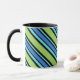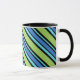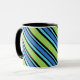 Un Ringer Mug chic avec un motif Blue Moons rayé de transats en Turquoise, Neon Green, Dazzling Blue et Black. Une partie de la collection Posh & Painterly 'Blue Moons'.