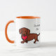 Art unique et drôle de chien peint par Naomi Ochiai du Japon. Les articles mignons et drôles de cadeau de bande dessinée de teckel pour le teckel évente ! ! Un chiot adorable de teckel vous apportant un coeur mignon. Conception de rouge et de coeur pour la Saint-Valentin ! ! Vous pouvez customiser le texte et plus !