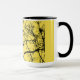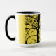Tasse combinée de café/thé avec la conception solitaire de corneille sur un fond jaune.