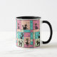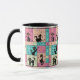 Modèle de couleurs moderne du milieu du siècle. Cinq chats noirs profitent de la grille horaire dans un design mondrianais.