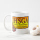 Cette tasse de 15 onces a une version légèrement différente du logo de HSGA, avec la guitare au côté, répété des deux côtés.