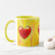 Conception rouge de coeur de café de jaune en céramique de tasse. Moderne élégant coloré. Coeur moderne !
