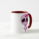 Ce crâne pourpre adorable de sucre est décoré des remous tribaux et des baisses avec un grand coeur violet au milieu du front. Un rose rouge simple se repose du côté du crâne rond juste au-dessus des grands yeux au beurre noir. Les pédales de fleur entourent les yeux et la bouche a les points qui font leur manière vers le haut du côté de la joue. Cette conception de tasse est un exemple adorable de ce jour du symbole mort.