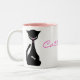 Cette tasse a le vrai cattitude, avec une silhouette de chat noir qui a un os de poissons dans lui est allumée ventre, et un collier rose de point de polka. Fait un cadeau mignon pour n'importe quel amoureux des chats.
