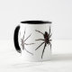 Cette tasse unique comporte des araignées de loup, rabida de Rhabidosa. Les araignées de loup sont de grandes, velues araignées et habituellement modelé avec un mélange de noir, de gris, et brun.