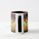 Appréciez votre brew préféré dans une tasse d'art d'Akrotiri avec le motif décoratif numériquement augmenté de la conception originale combinant la photographie originale de nature et la couleur fluorescente photographiées dans la lumière UV créée par l'artiste contemporain Ralph Jones inspiré par des restes des fresques antiques découverts chez Akrotiri sur l'île de Cycladic de Thera.