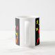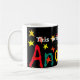 Une tasse blanche classique pour quelqu'un a appelé Andrew avec un collage de papier peint à la main du nom, Andrew, arrosé avec des étoiles de rouge et de jaune, sur un arrière - plan noir.