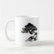 Deux bonsaïs différents en noir et blanc, un de chaque côté de la tasse ont séparé par les caractères de kanji pour des "bonsaïs".