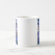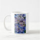 Une tasse de café blanc comportant mon illustration colorée de crayon des hortensias bleus