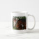 Peinture et cheval de baie caressant vers le haut de la tasse de café.