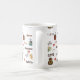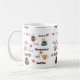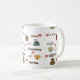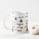 Une tasse de café blanc avec le mot "café" dans différentes langues et polices et images des tasses et des coeurs de café. Ceci ferait un cadeau parfait pour n'importe quel amant de café.