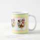 Quels sont plus doux et plus jolis qu'un bouquet des pois doux de jardin ? Les voici qui sont décrits sur un arrière - plan doux de jaune de grain, équilibré avec le rose de coquille et la sauge pour une jolie et molle tasse de café en céramique.