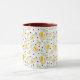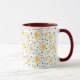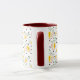 Les pommes et les graines stylisées ont dispersé sur une tasse de café accentuée avec la poignée et l'intérieur rouges.