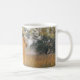 Tasse de café décorée d'une photographie de couleur rentrée la lumière molle d'un matin australien d'un kangourou gris oriental se reposant dedans parmi les arbres de gomme au central à l'ouest de NSW, Australie. Une partie de collection de cadeau "du matin australien" de la colline de manoir chez Zazzle.