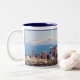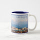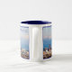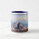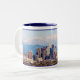Tasse de café avec le panorama de Los Angeles du centre avec les montagnes couronnées de neige de San Gabriel à l'arrière-plan.
