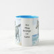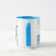 Une tasse de café blanc avec une lèvre et une poignée bleu-clair, et un poney de Connemara, galopant par les vagues, avant et de retour. Il y a également l'espace pour ajouter le nom de propriétaire betweent les deux images, ou le lettrage peut être enlevé totalement si préféré.