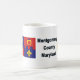 Une tasse de café avec le drapeau et le logo du comté de Montgomery le Maryland