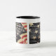 C'est une tasse de café patriotique de "déclaration d'indépendance" avec une interprétation artistique du drapeau américain et de l'inscription suivante :