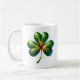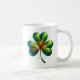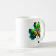 Cette tasse à café blanche classique est illustrée d'une impression festive de trèfle pour la Saint-Patrick.