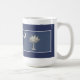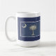 Cette tasse comporte une reproduction dans le style grunge de texture du drapeau d'état de la Caroline du Sud, du Palmetto et du croissant, dans le bleu de faner-regard sur un arrière - plan bleu plus foncé.