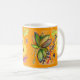 Voici une tasse qui est un cadeau parfait. Le groupe merveilleux et libre d'art. original de feuille et de fleurs sur l'arrière - plan jaune sont très gai n'importe quel matin ou soirée. L'art original devrait être main lavée.