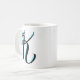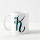 Calligraphie de la lettre "K" sur une tasse de base avec des accents bleus
